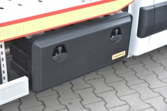- Haki + instalacja (konstrukcja wzmacniająca łącząca ramę podwozia z ramą zabudowy + kule na pałąku i tylnym zderzaku, gniazda 13 pinowe)